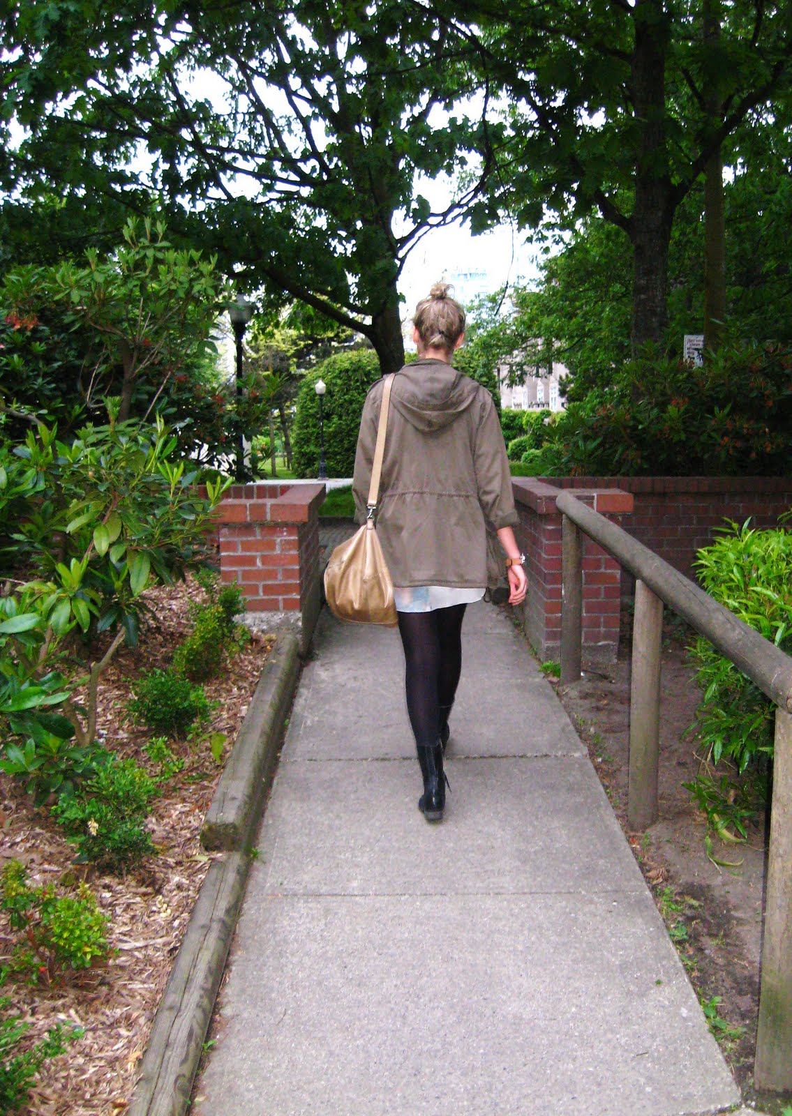 Jacket: Talula ~ Shirt Dress: Wilfred ~ Boots: Jeffery Campbell ~ Watch: fantastic find at a vintage shop ~ White Stone Ring: Thrifted ~ Silver Ring: from Bali ~ Silver Bangles: H&M ~ Bag: Abro